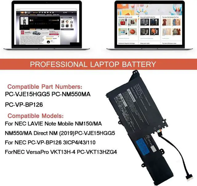 For NEC PC-VP-BP126 is a high-performance lithium-ion battery designed specifically for NEC ultra-thin laptops, widely used in models such as the LAVIE series and VersaPro VK23TG (compatibility covers multiple generations of devices). Its core parameters are 11.52V voltage and 3166mAh capacity (nominal energy of 33Wh), supporting moderate office battery life of up to 4-6 hours. This battery adopts lithium-ion technology and has passed CE/RoHS certification to ensure safety and environmental protection.