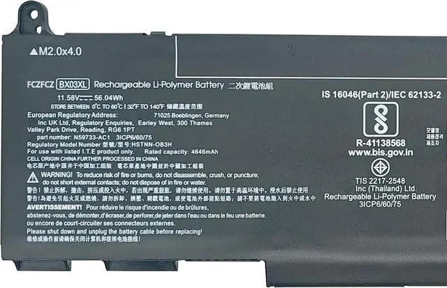 Capacity:56Wh 4646mAh 3-cell