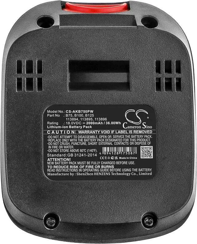 • Battery Specifications:Capacity: 2000mAh, WH: 36.0Wh, Type: Li-ion, Voltage: 18.0V