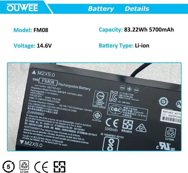 FM08 TPN-Q195 922752-421 922753-421 922976-855 922977-855 920070-855 HSTNN-LB8B HSTNN-LB8A