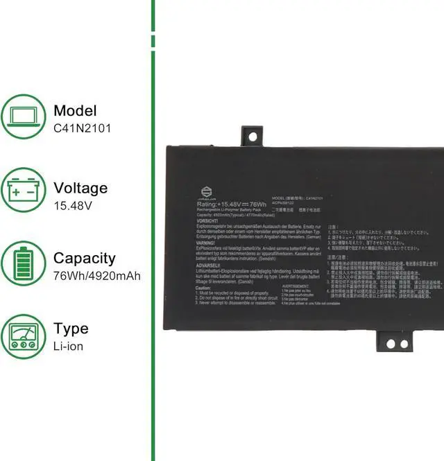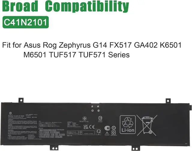 JIAZIJIA C41N2101 Laptop Battery Replacement for Asus Rog Zephyrus G14 FX517 GA402 K6501 M6501 TUF517 TUF571 Series Notebook 15.48V 76Wh 4920mAh
