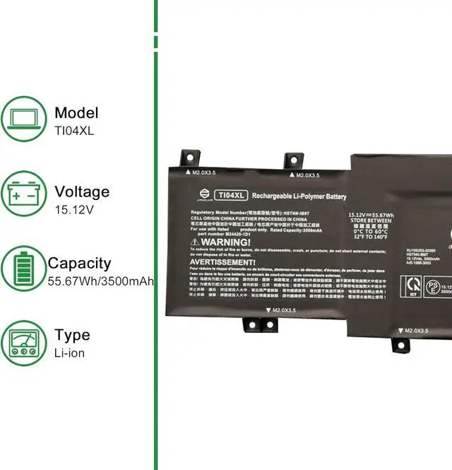 JIAZIJIA TI04XL Laptop Battery Replacement for Hp Envy 17M-CH0013DX 17-CH0027UR 17-CH0026UR Series Notebook M24563-005 HSTNN-IB9T M24420-1D1 Black 15.12V 55.67Wh 3500mAh