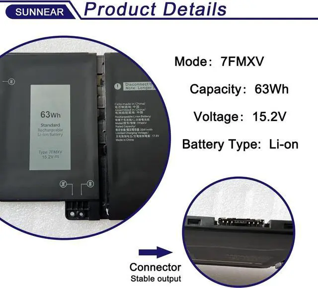 Compatible Part Number:7FMXV 0TN2GY TN2GY 9JM71 4M1JN 1PP63 HDGJ8 MHR4G.