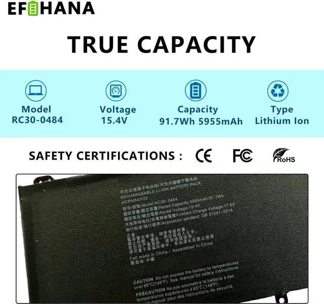 Help others learn more about this product by uploading a video!EFOHANA RC30-0484 Laptop Battery Replacement for Razer Blade 18" (2023) RZ09-0484x 2024 RC30-04840200-B3U1 Series RZ09-0