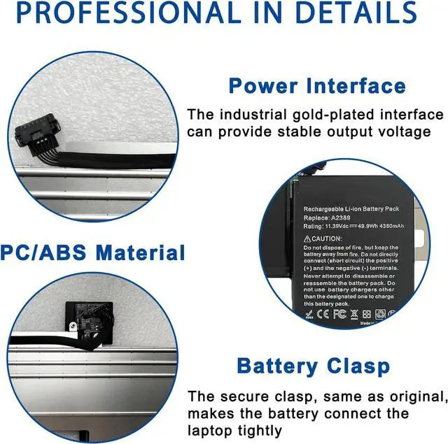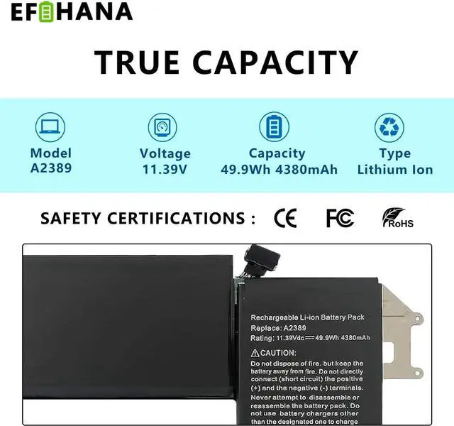 Help others learn more about this product by uploading a video!A2389 A2337 Laptop Battery Replacement for MacBook Air 13 Inch A2337 (M1 2020) EMC 3598 MGN53LL/A MGN63LL/A MGN93LL/A MGN73LL/A MGNA3LL 11.39V 49.9Wh 4380mAh
