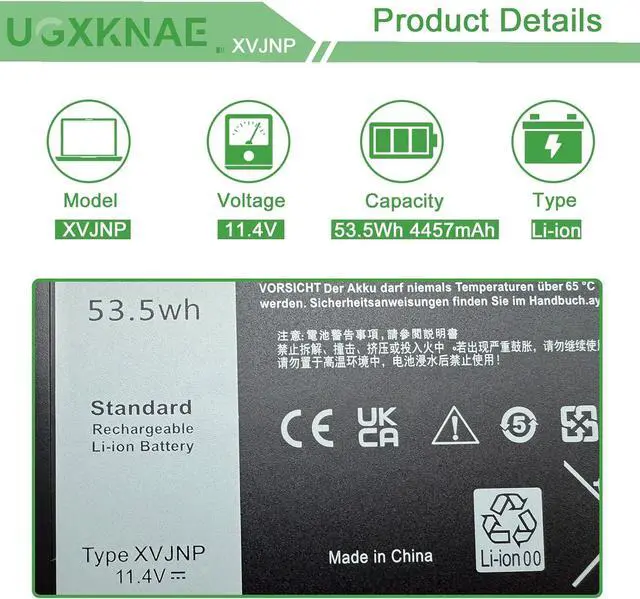 Laptop Models: Fit for Dell Latitude 7330 Rugged Series; Fit for Dell Latitude 5430 Rugged Series; Fit for Dell P148G P148G001 P149G P149G001 Series^^Security Information: Each battery has undergone stringent safety testing, such as CE, UL certification, and It's made from premium materials with built-in circuit protection for safety and stability. Offering exceptional performance with fast charging and low power consumption.