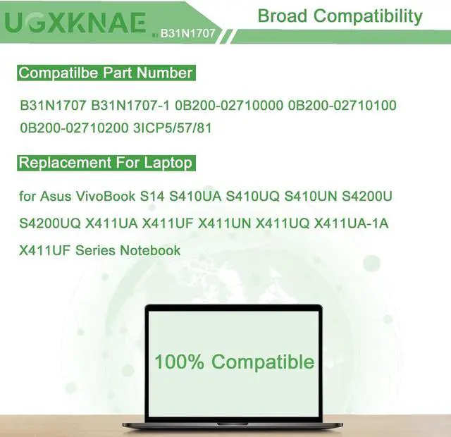 Replacement for Asus VivoBook S14 S410UA S410UQ S410UN S4200U S4200UQ X411UA X411UF X411UN X411UQ X411UA-1A X411UF Series Notebook