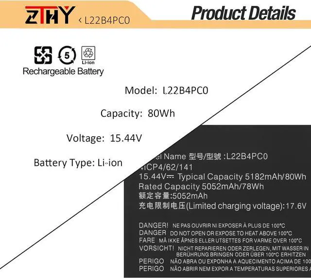 Compatible Part NumberL22B4PC0 SB11N45431 5B11N45420 5B11K38949 L22C4PC0 SB11N45405 5B11N45395 5B11K38955 L22D4PC0 SB11N45409 5B11N45428 5B11K38961 L22M4PC0 SB11N45408 5B11N45419 5B11K38959 L22X4PC0 SB11N45400 5B11N45439 5B11K38953 41CP4/62/141Compatible ModelReplacement for Lenovo ThinkBook 16p G4 IRH (Type: 21J8) Series;Compatible ModelReplacement for Legion Pro 5 16ARX8 Series;Compatible ModelReplacement for Lenovo Legion Pro 5 16IRX8 (Type: 82WK) Series;Compatible ModelReplacement for Lenovo Legion Pro 5 16IRX9 (Type 83DF) Series; Compatible ModelReplacement for Lenovo Legion Pro 7 16ARX8H (Type: 82WS) Series;Compatible ModelReplacement for Lenovo Legion Pro 7 16IRX8 (Type: 82WR) Series;Compatible ModelReplacement for Lenovo Legion Pro 7 16IRX8H (Type: 82WQ) Series;Compatible ModelReplacement for Lenovo Legion Pro 7 16IRX9H (Type 83DE) Series.AttentionIf you install the battery, you find that the laptop cannot detect the battery or the battery level cannot be displayed normally. Please check whether the battery cable is installed properly. Sometimes the battery cannot be charged because the cable is not fixed properly. What do I need to be aware of when I receive a battery?