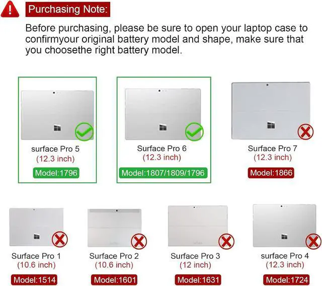 45Wh G3HTA038H DYNM02 Laptop Battery for Microsoft Surface Pro 5th Gen (Model 1796, 2017), Surface Pro 6 (Model 1807/1809/1796, 2018 Tablet Series) 12.3" 2-in-1, Core i5 i7 m3 FJU-00001 FKJ/FKG-00001