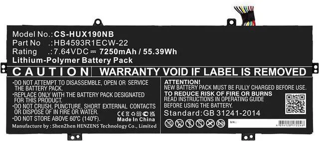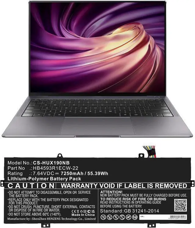 Perfect CompatibleThe compatible battery with MACH-W19L, MateBook X Pro 2020, VLT-W60, 7250mAh, 7.64V ^^Quality certificationOur battery has a strict quality control standards, has passed the ISO9001, RoHS, and CE certified. The battery was tested many times before it was delivered to the customer. A+ cells ensure longer battery life. ^^High QualityHigh capacity circulation function, perfect replace your original batteries. ^^Battery SafetyUsing up all the power of battery for the first three times before charging, and then take a full charge, thus the battery can be reached the optimum effect of using.