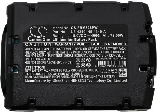 Information: Li-ion, Voltage: 18.0V, Capacity: 4000mAh / 72.00W h.