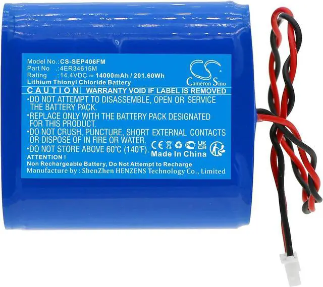 Information: Li-SOCl2, Voltage: 14.4V, Capacity: 14000mAh / 201.60W h.