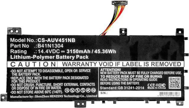 V451LA-DS51T^^Battery SpecificationsCapacity: 14.4V /3150mAh/ 45.36W h, Dimension: 196.52 x 81.92 x 10.46 mm. ^^Perfect ReplaceHigh capacity circulatory function, perfect replace your original batteries. ^^Battery SafetyUsing up all the power of battery for the first three times before charging, and then take a full charge, thus the battery can be reached the optimum effect of using. Please remember that its full performance and longevity is only achieved after 3 to 5 complete charge and discharge cycles. ^^After-sales serviceBuy with confidence. We guarantee 24-hour email support, Please kindly check the compatible Voltage, Cell Size and Connector Type for best fit.