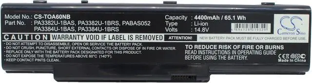 HongQJY New Replacement Battery for Dynabook AW2, Dynabook AX/2, Dynabook AX/3, Satellite Pro A60 (4400mAh) PA3384U-1BAS, PA3384U-1BRS