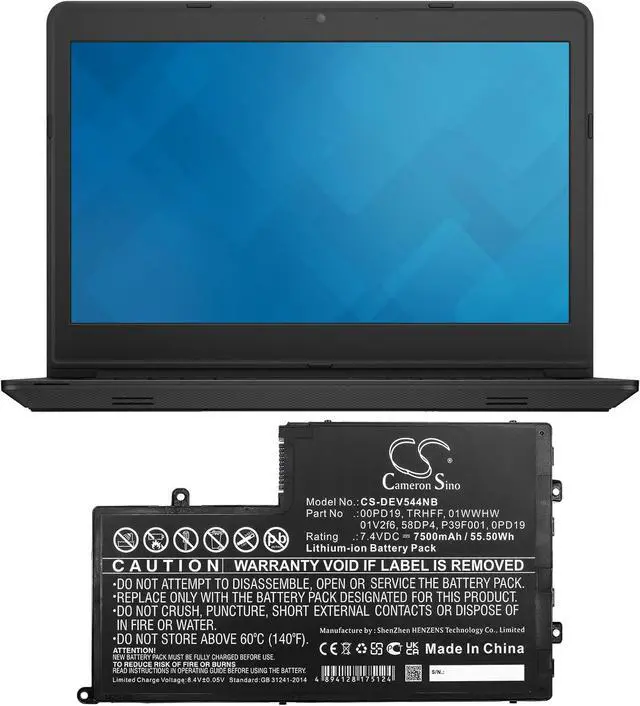 HongQJY New Replacement Battery for Dl011307-prr13g01, Ins14md-1328r, Latitude 3450, Vostro 14-5480d-3528s (7500mAh) 00PD19, 01V2f6, 01WWHW, 0PD19, 58DP4, P39F001, TRHFF
