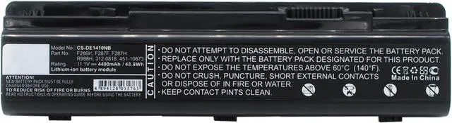 Perfect CompatibleThe compatible battery with DEL'L, Vostro 1014, Vostro 1014N, Vostro 1015, Vostro 1015N, Vostro 1088n, Vostro A840, Vostro A860, Vostro A860n, Vostro1088, PN: 0F286H, 0F287H, 0G066H, 0G069H, 0R988H, 312-0818, 451-10673, DP-01072009, DP-07292008, F286H, F287F, F287H, G066H, G069H, PP37L, PP38L, QU-080807001, QU-080807002, QU-080807003, QU-080807004, QU-080917001, R988H, 4400mAh, 11.1V ^^Battery
