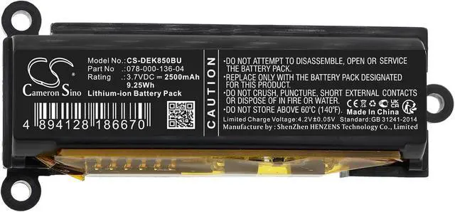 kind: Li-ion, Voltage: 3.7V, Capacity: 2500mAh / 9.25W h.