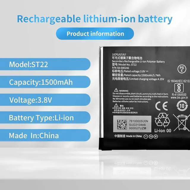 3.8V 5.7Wh 1500mAh ST22 58-000246 1ICP3/67/67 Replacement Battery for E-Book E-Reader