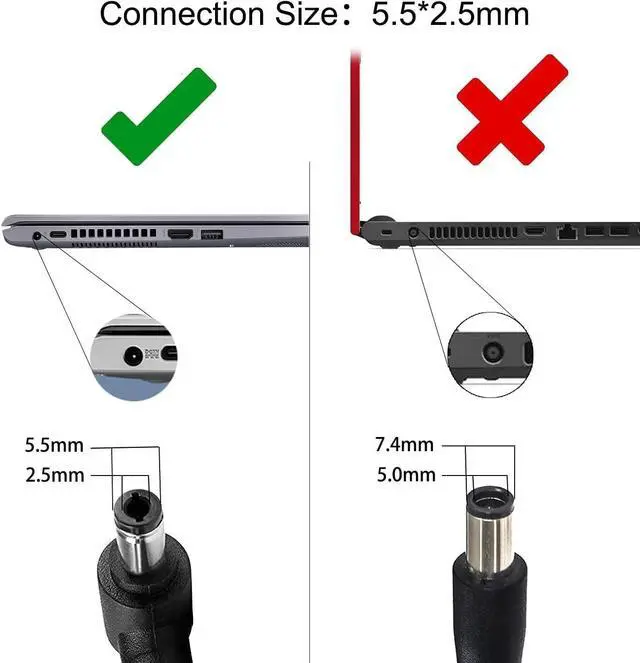 - Power specsAC input:100 - 240V / 50-60Hz DC output:19.5V/9.23A Power:180W DC Plug Size :5.5 mmx2.5mm(No pin in the charger interface).
