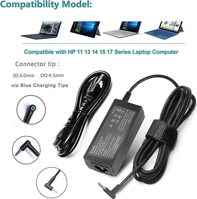 COMPATIBILITY - This product is compatible with HP Laptop 11 13 14 15 17 Series Laptop Computer Via Smart Blue Tip charging port: HP Pavilion (X360) 11 13 14 15 17; HP Stream 11 13 14 15 X360; HP Chromebook 11 13 14; Elitebook 820 G3 G4 , 830 G5 , 840 G3 G4 G5 , 850 G3 G4 G5 , ProBook 450 G3 G5 , 640 G2 G3 G4 G5 , 650 G2 G3 , Pavilion x360 , 13-s192nr, m3-u001dx , Stream 11 Pro G3 , Stream 11 Pro G4 EE , Chromebook 11 EE G2 G3 G4 G5 , Spectre x360 x2 And more