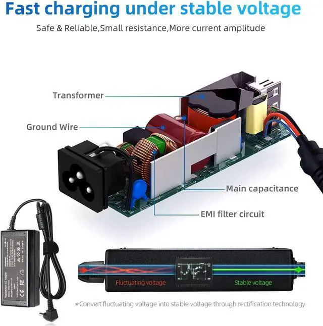 65W AC Adapter for Toshiba laptop This 65W Toshiba charger may be our most popular alternative to Toshiba charger, with faster charging speed, more advanced technology and better portability. It has also been recognized by many buyers on the Amazon platform. It is compatible with multiple series of Toshiba laptops. At the same time, buyers need to be reminded to pay attention to the interface between the power cord and the computer. The size of this interface is 5.5*2.5mm.