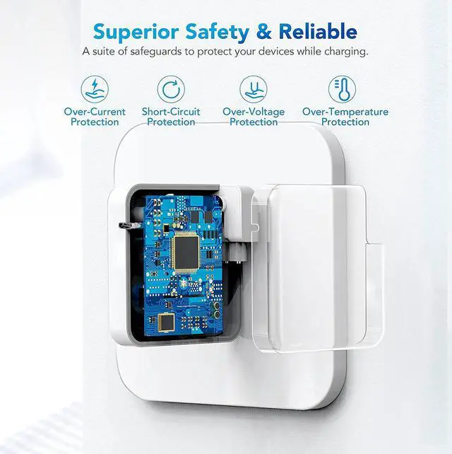 Safe Charging Safely charge, refuse to explode when hot. Built-in safety protection system, effectively avoid short circuit, over-voltage, over-current, and other safety hazards. Keeps you and your devices completely safe.