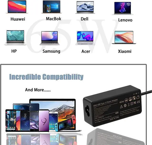Broad CompatibilityCompatible for Lenovo 45W 65W USB-C laptops: ThinkPad T480 T580 T480s, Yoga C940 C740 C930 730 S730 730S 920 Chromebook c330 100e 300e 500e c340 s340 ,Compatible for Samsung Chromebook XE513C24 XE513C24-K01US Plus; Compatible for Asus Chromebook Flip C302 C213 C302C C302CA C302CA-DHM4 12.5-inch and other smart devices with type C.