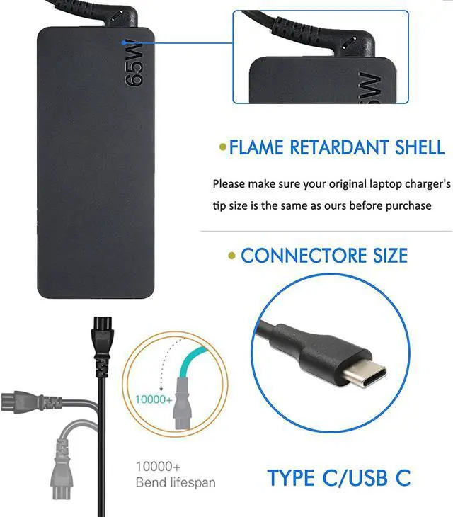 This charger has been tested to ensure compatibility with the following Lenovo 45W 65W USB-C laptops: