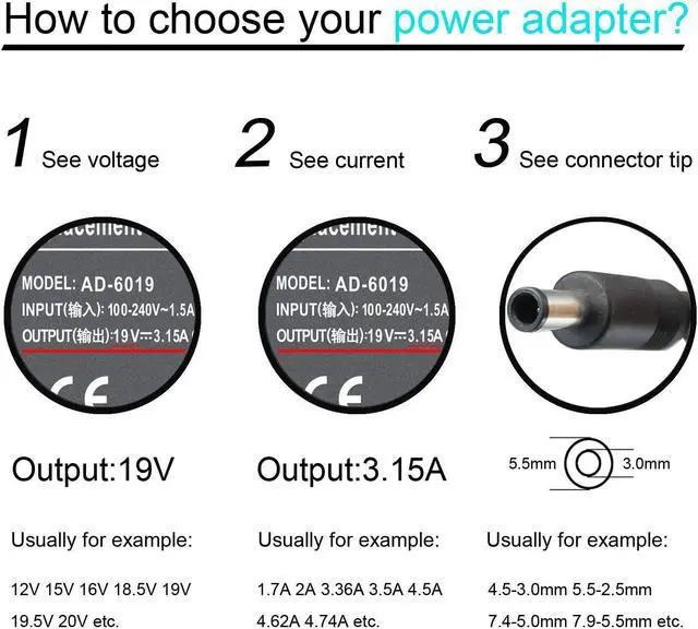 Output (DC): 19V 3.15A/3.16A 60W