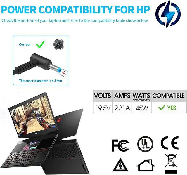 HP laptop charger 15-a 15-bs 15-bw 15-ba 15-d 15-f 15-g 15-r 17-f 17-g 17-p Series: