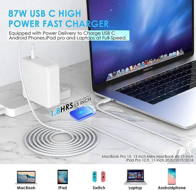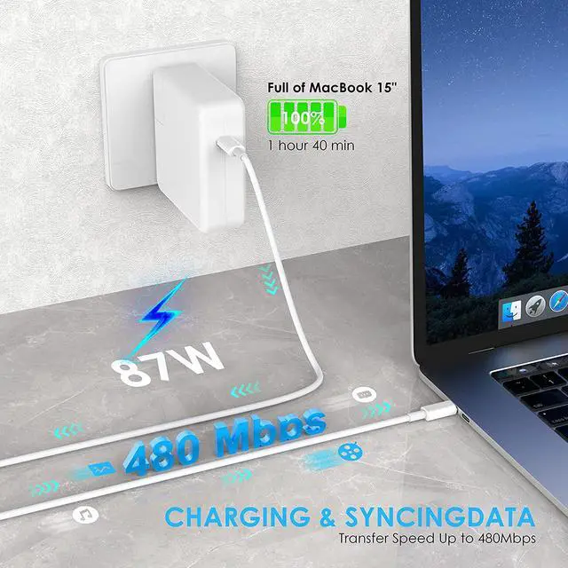 Yieserra 87W USB C Charger Power Adapter & 6.6ft Charging Cable