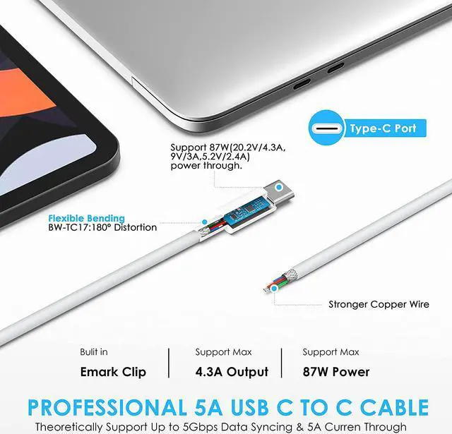 6.6ft Type-C to Type-C power cordgive you the freedom to use it anywhere. No more worries about the charging cable being too short