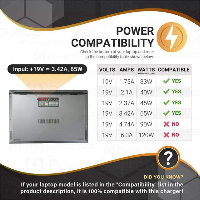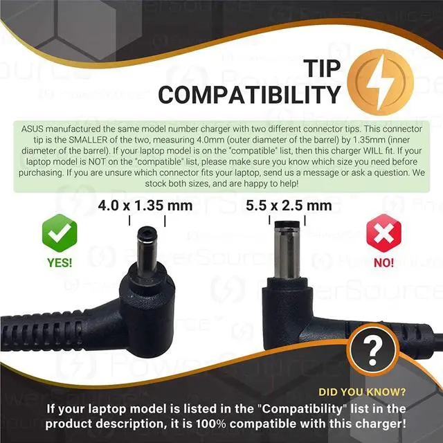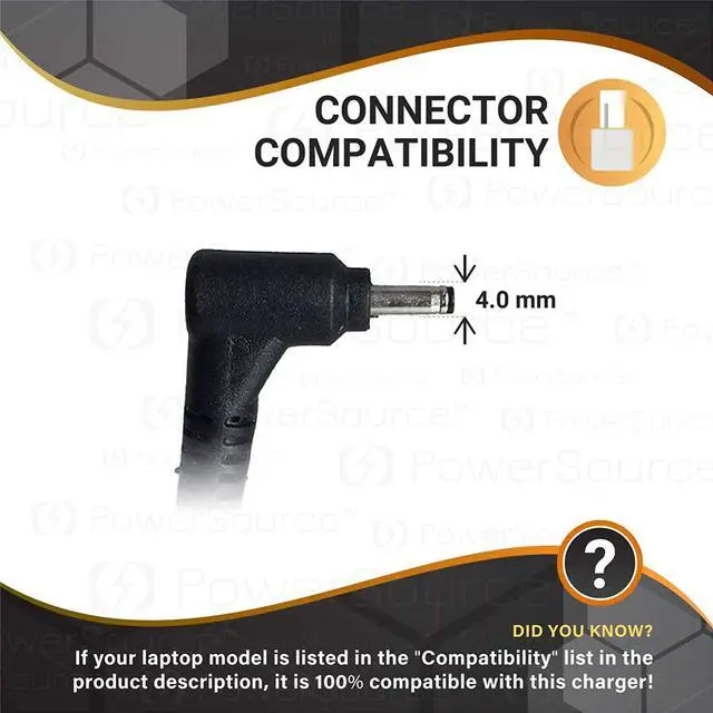 PLEASE CHECK CONNECTOR COMPATIBILITY PHOTOS! THIS CHARGER'S CONNECTOR TIP IS 4.0x1.35MM.