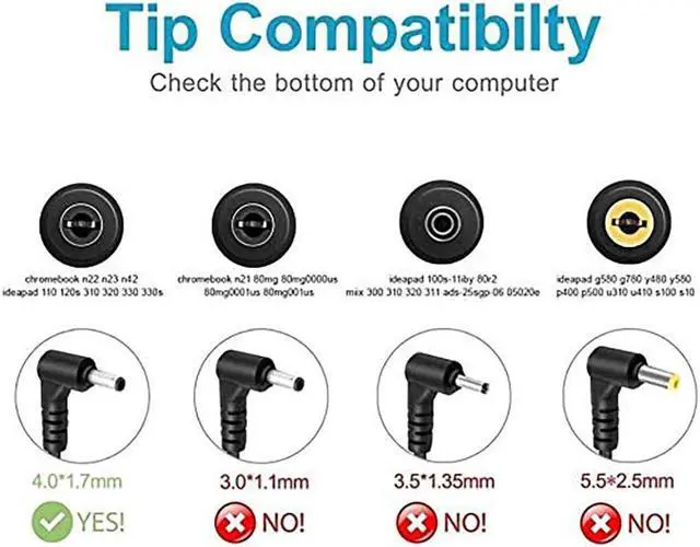 This charger has been tested to ensure compatibility with Lenovo ideaPad Series Laptops: