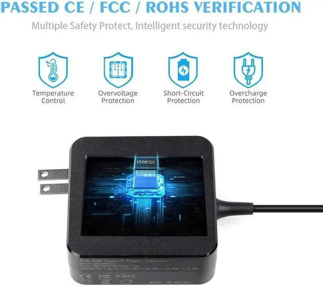 Efficient charging The 65w Type c charger has PD 3.0 fast charging, which makes charging more efficient, more convenient to connect, compact and light, very suitable for travel and office.