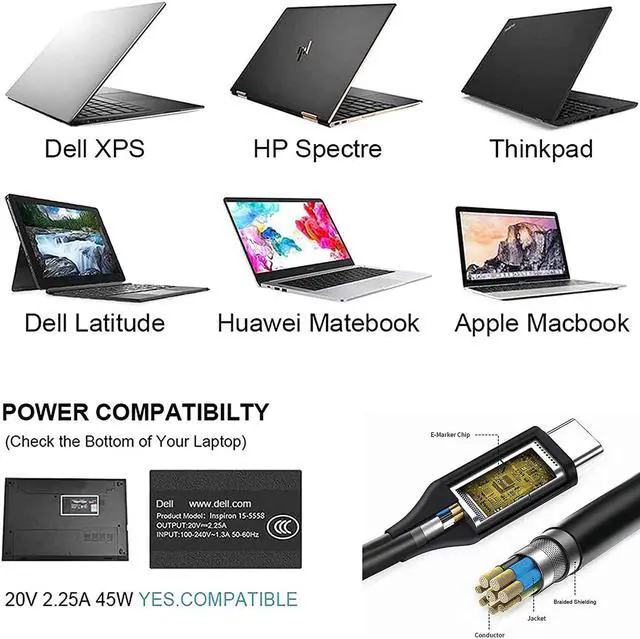 45W Type-c, USB-C, laptop charger, power adapter, power cord, compatible with HP; compatible with L-enovo; compatible with Asus; compatible with Dell, and more.