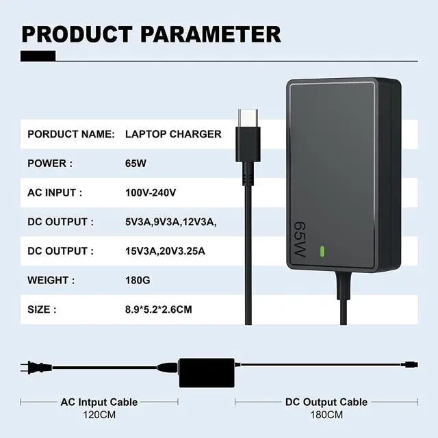 Check your Chromebook laptops or other USB-C devices DC output! Please notice that this chromebook charger replacement only can work for USB-C DC-in devices and under 65W! Not only these models! If you are not sure with your devices, we provide 24-hour online service!