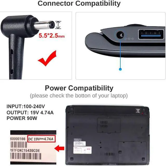 New 90W AC Adapter Charger for Asus N56V N56VJ K53E K55A Q550L U56E X53E X551M X555LA N56 N56DP N56VM N56VZ N76VJ N76VZ