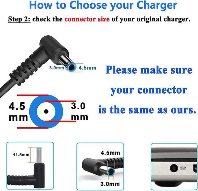 Connector size: 4.5 mm outer diameter / 3.0 mm inner diameter (Blue Tip)