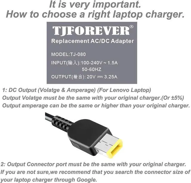 2. Please check the specifications of your original charger(Output: xx V=xx A).