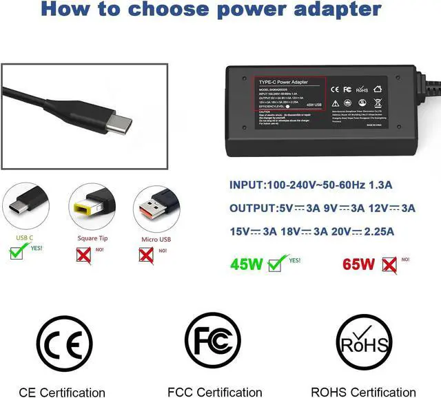 Safely Use This 45w Usb-C Laptop Charger Ac Adapter Power Cord Supply!