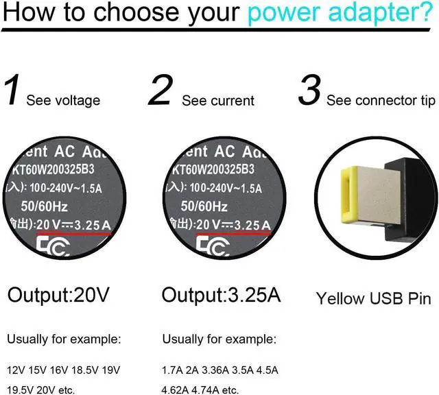Output (DC): 20V 3.25A 65W (20V 2.25A 45W also compatible)