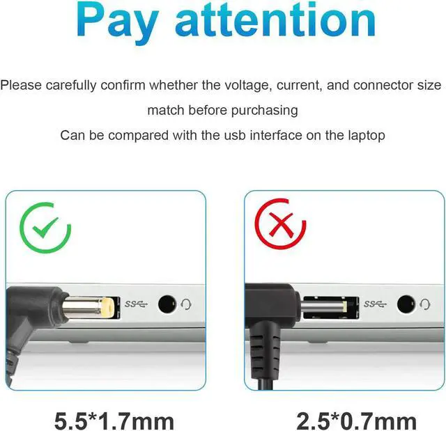 • NOTE: If the output Voltage Ampere DC jack size and connector Dia. is the same as your ac adapter it can fit your computer. Please double ensure. If not it will not compatible.