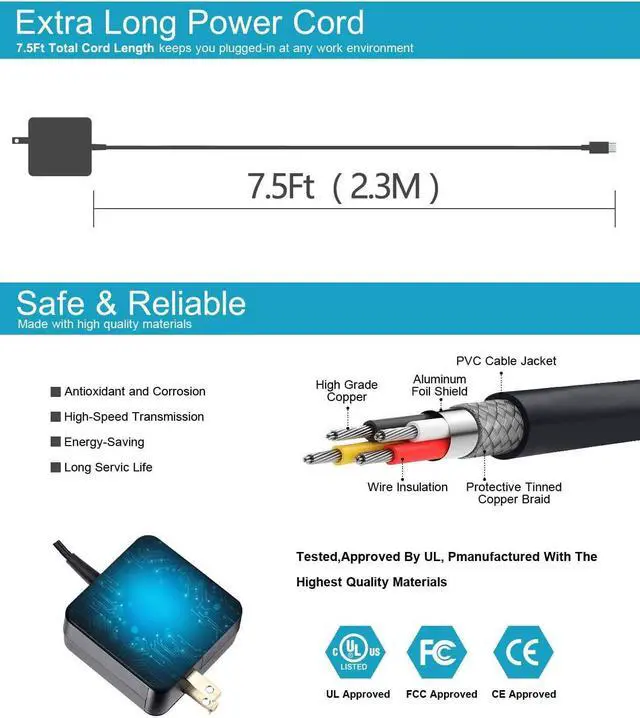 USB-C Power Cord Length: 8.2Ft Extra Long USB-C Power Cord (Convenient for you to reach in your house or other places)