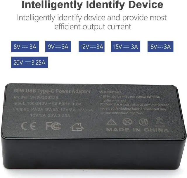 Output: 5V-3A, 9V-3A, 12V-3A, 15V-3A, 18V-3A, 20V-3.25A