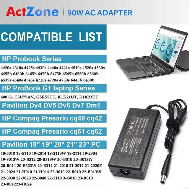 High-Quality Round Tip Charger Compatible with HP Elitebook Laptop The ActZone charger is the professional manufacture for your Lenovo Laptop. Our replacement charger is your best choice for home,travel and work. The package include one power cord with greater flexibility.