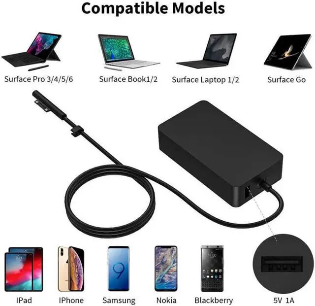 15V 4A 65W Charger Compatible with Microsoft Surface Pro 7 /6 /5 / 4/ 3, Surface Laptop 1 /2 /3, Surface Book 1/ 2 / 3, Surface Go 2, Surface Pro X 65W POWER SUPPLY