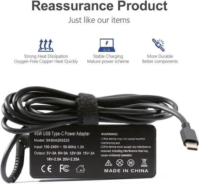 Output: 5V-3A, 9V-3A, 12V-3A, 15V-3A, 18V-2.5A, 20V-2.25A