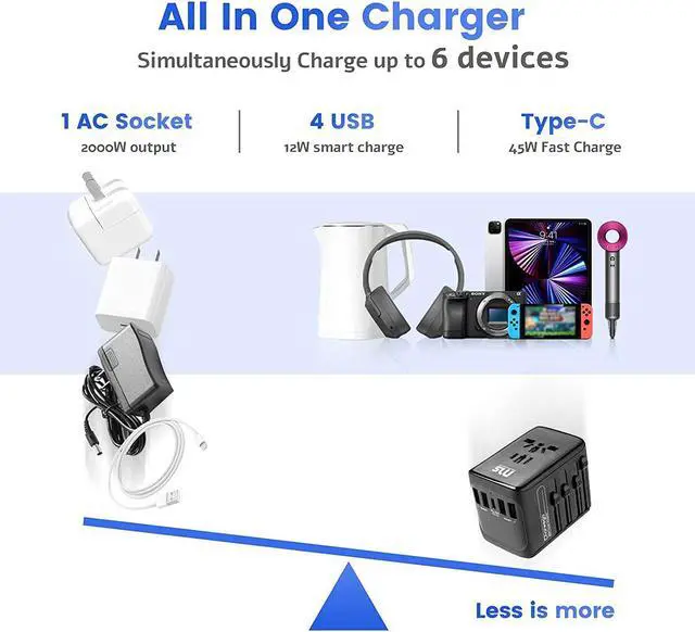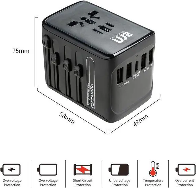 Universal Power Adapter for International Use Your Everyday Solution To Multiple Device Charging This Power Adapteris a smart charger that can defend your electronic devices from over-voltage, over-current, and short circuits. It offers effective protection for your baby or pets as well.