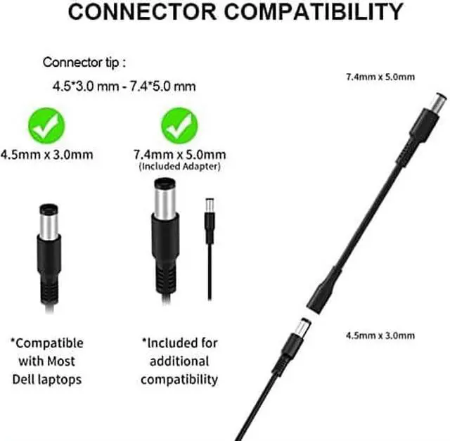 Compatible with Dell adapter 45 and 65W.pls check the label of your laptop&refer to the compatibility information.